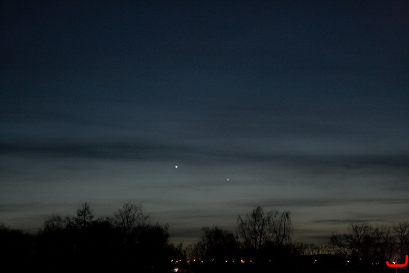 Venus und Merkur, Balkonsternwarte, 2. 4. 2010, EF 5,6/55 mit EOS 400D auf Fotostativ,ISO 1600, 1/2 s.
