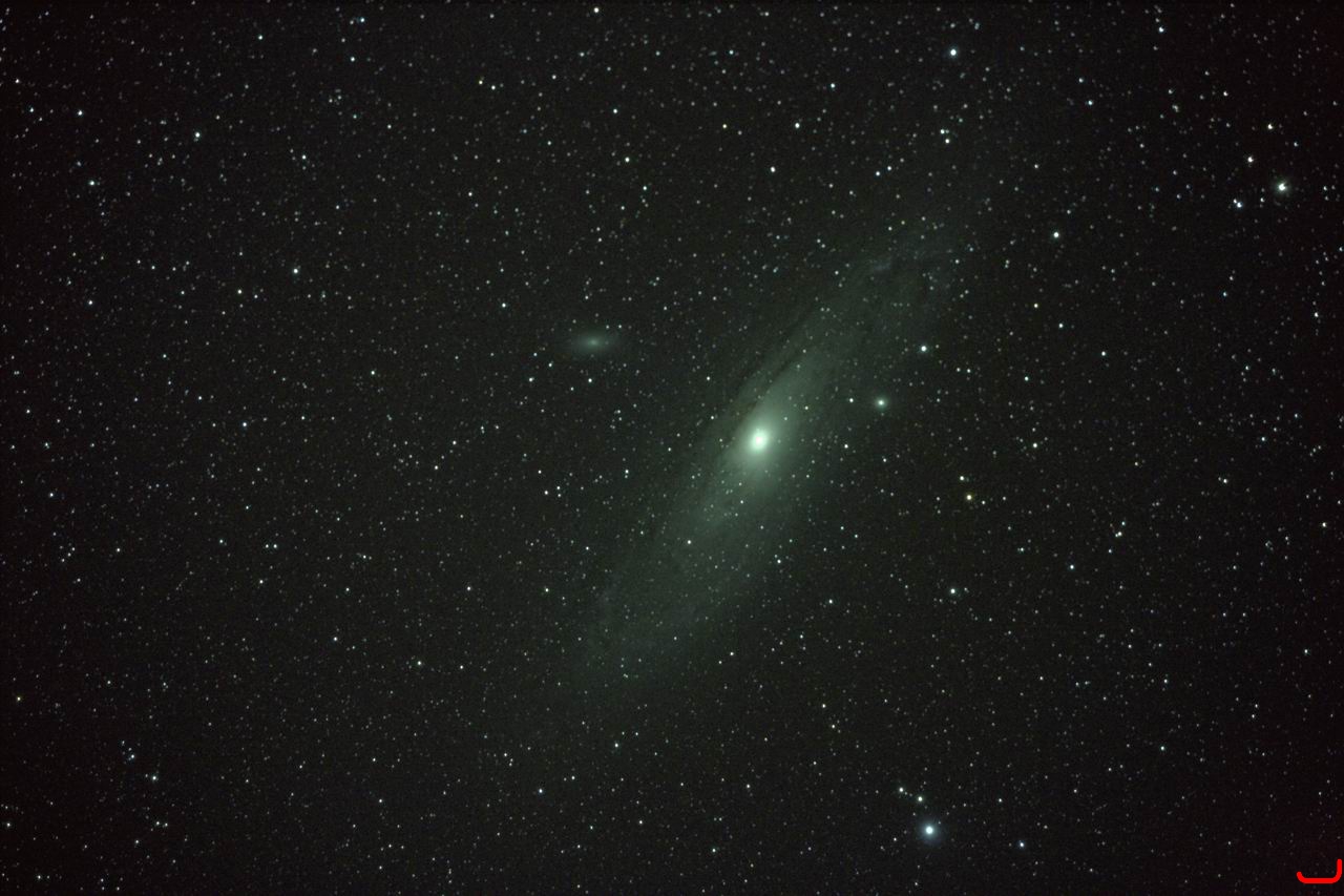 Andromedanebel (M31) im Sternbild Andromeda,Balkonsternwarte, 11.10.2010, EOS 400D mit Sonnar 3.5/135 auf EQ6,ISO 1600, 10 s bis 900 s, CLS-Filter, PHD-Guiding mit f = 500.Neubearbeitung am 15.1.2017