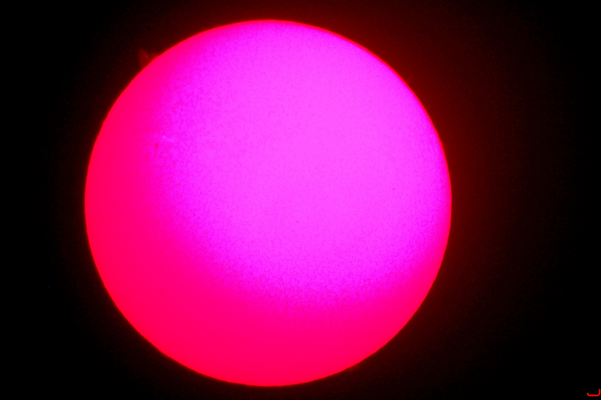 Sonne mit Coronado-PST im H-Alphalicht,Balkonsternwarte, 30.12.2020, EOS 60Da am Coronado-PST der Sternwarte,Projektion mit Hyperion 12 mm auf f = 1,5 m.ISO 1600. 1/60 sec,Einzelbild.