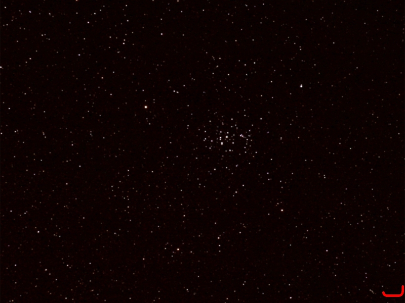 Präsepe (M 44) im Sternbild Krebs, Balkonsternwarte, 31.3.2009,EOS 400D mit Biotar 1,5/75, Blende 5,6 auf EQ6,ISO 800, 6 x 10 s + 4 x 30 s,kein Filter,kein Guiding.