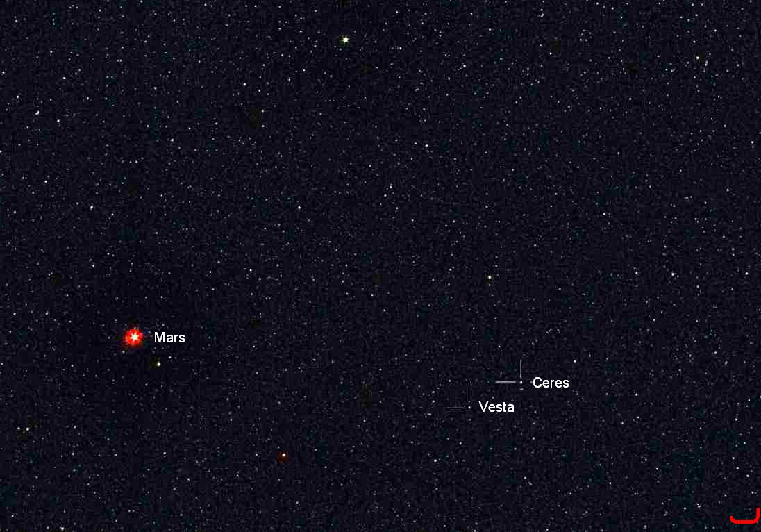 Ceres und Vesta neben Mars,