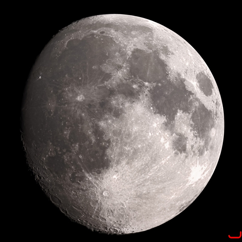 Mondalter 16 d.Balkonsternwarte, 8.1.2009, 12"-Newton mit EOS 400D auf EQ6, ISO 100, 40 x 1/125 s, Summenbild aus 24 von 100 Aufnahmen, HDR-Bearbeitung